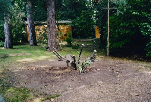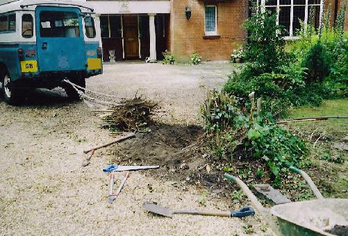 By the side of this bed and also bordering the drive was a very large holly bush which we cut down and finally extracted by tugging out the roots using a LandRover.