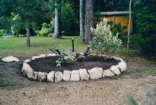 Stones set around the periphery of the bed - and dragging out the root bole of the holly