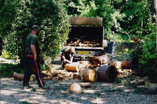 Taking down one of the Scots Pines that had become hollow - and the evergreens chosen to replace the holly.